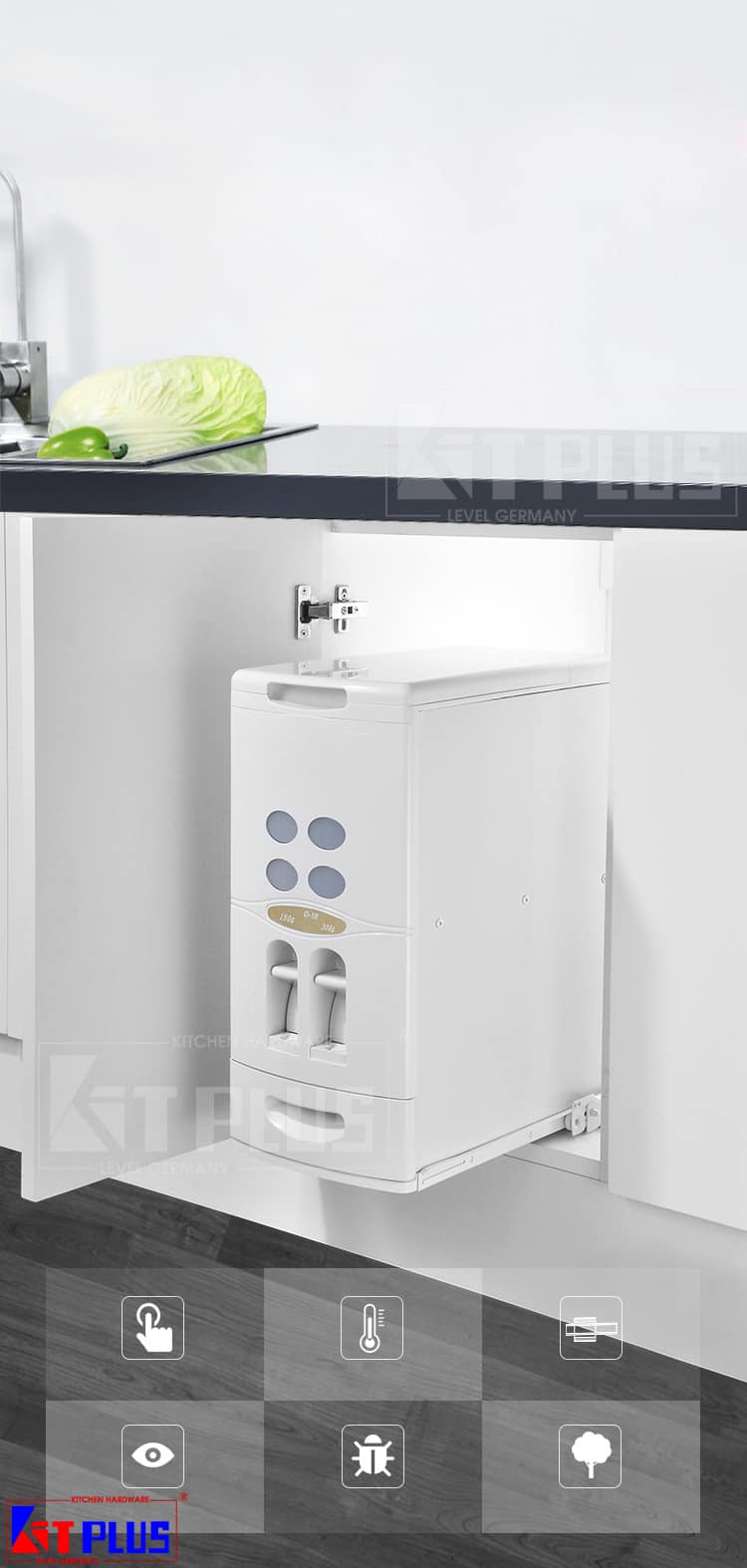 Hình ảnh: Thùng đựng gạo thông minh 2 nút ấn âm tủ