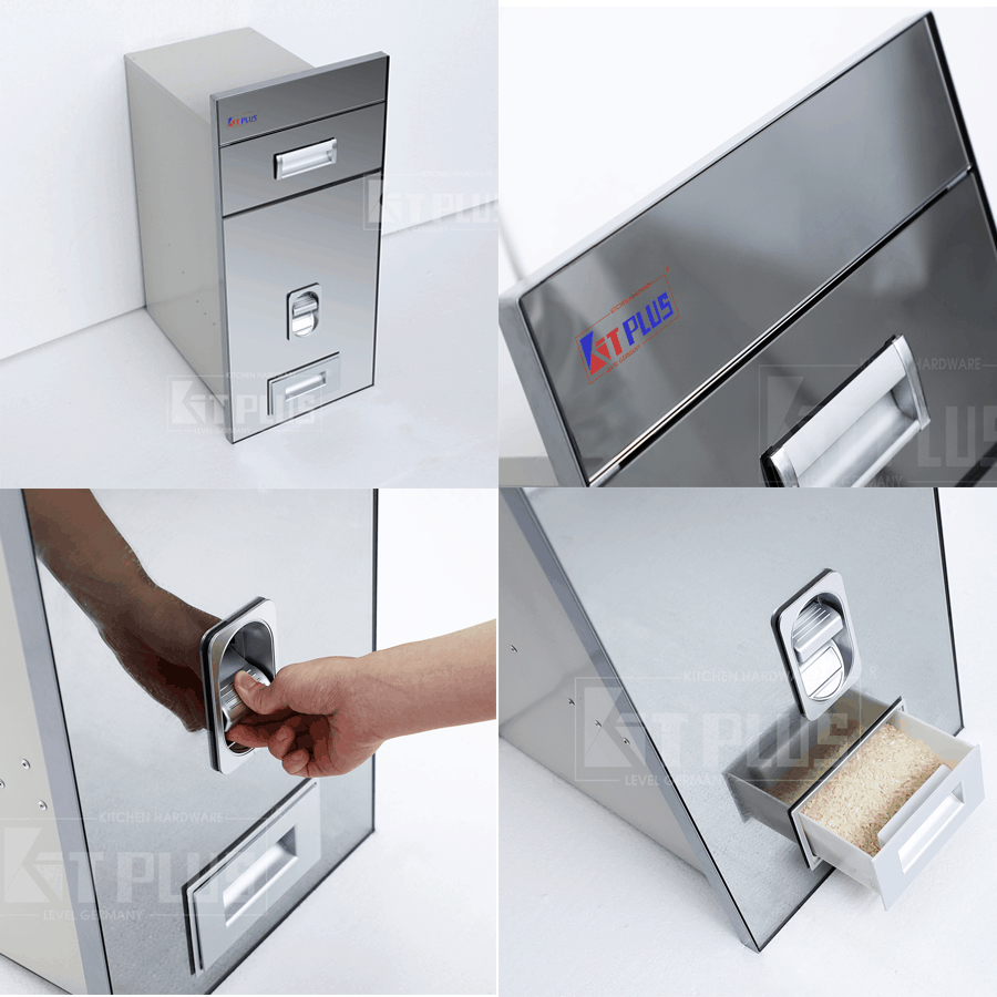 Trên thị trường, có rất nhiều mẫu mã sản phẩm thùng đựng gạo thông minh, khách hàng có thể thoải mái lựa chọn. Tuy nhiên, điều này không tránh khỏi sẽ có những sản phẩm hàng giả, hàng nhái, kém chất lượng với nhãn mác cao cấp giá thành cao. Là người tiêu dùng, chúng tôi khuyên bạn nên tìm hiểu kỹ trước khi lựa chọn sản phẩm, nên tìm đến những hãng có thương hiệu để mua cho yên tâm. KIT PLUS hiện đang là một trong những hãng chuyên cung cấp, phân phối các dòng sản phẩm phụ kiện thùng đựng gạo cao cấp. Hiện chúng tôi đang có các loại mẫu được đông đảo khách hàng lựa chọn :+ Thùng đựng gạo âm tủ :
