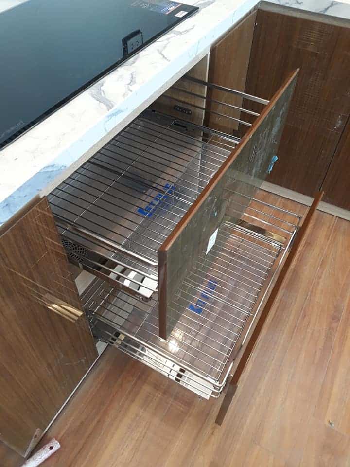 Ngoài ra các kích thước nhỏ hơn cũng phù hợp với các gia đình có không gian bếp nhỏ, việc sắp xếp khoa học cũng rất tiết kiện diện tích cho chúng ta. phía dưới là giá xoong nồi 600mm với sức chứa lên tới 11 chiếc nồi và xửng.