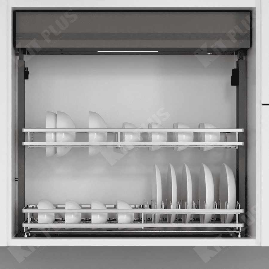 Giá bát điện KIT PLUS DLEX 800 là nơi lưu trữ đồ lý tưởng, bảo vệ tránh hư hại cho tủ bếp. Hoạt động nâng hạ được thực hiện tự động bằng những cái chạm tay tiện lợi. Sức chịu tải trọng cao, hoạt động ổn định và êm ái.
