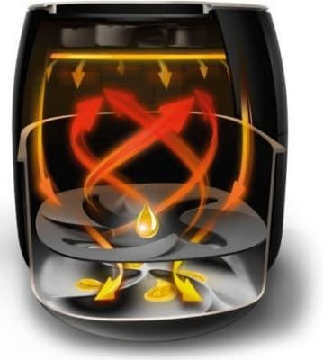 Theo đó, mặc dù tất cả các sản phẩm nồi chiên không dầu hiện nay trên thị trường đều hoạt động theo nguyên lý quạt thổi hơi làm nóng không khí. Điều này có nghĩa là, bộ phận quạt thổi hơi nóng sẽ đóng vai trò chính trong quá trình làm chín thực phẩm bằng không khí. Bộ phận này sẽ làm nóng và luân chuyển luồng không khí bên trong lò nướng không dầu bằng điện trở. Từ đó, thực phẩm có thể chín dần mà không cần sử dụng dầu, mỡ. Nhiệt độ mà điện trở có thể làm nóng lên tới 200 độ C.